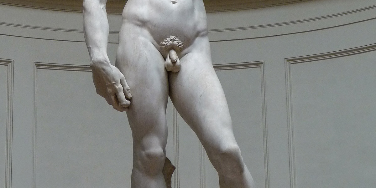Proč ho má malého? Ptají se všichni. Tělo je ideálem mužské krásy, každý sval vypracovaný k naprosté dokonalosti. Tak proč má velký David (socha měří 4,1 metru) tak malý penis? Odpověď je prostá. Malé genitálie jsou renesanční konvencí.