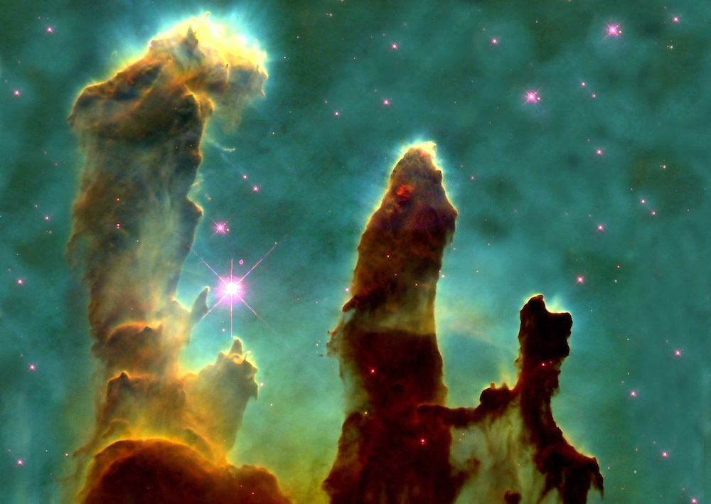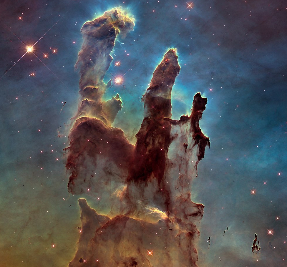 Když se na ni s příchodem roku 1995 zaměří slavný Hubbleův vesmírný dalekohled, objeví vědci na snímcích útvary, které se rázem stanou astronomickými ikonami.