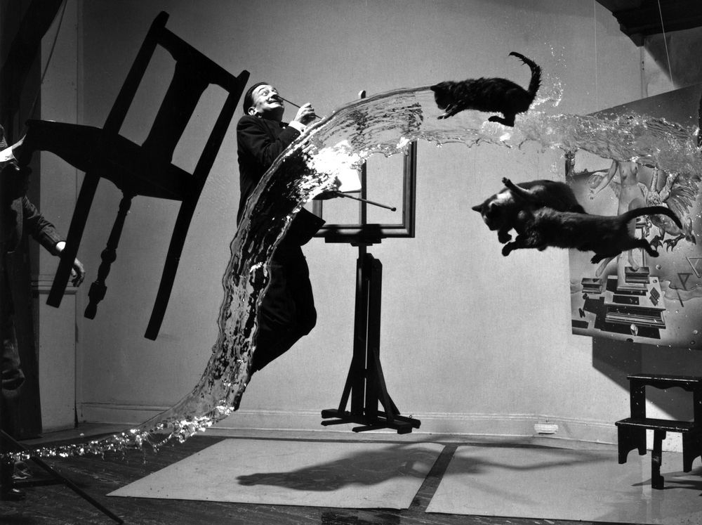 Proto o sedm let později ochotně skáče do vzduchu, aby ho mohl lotyšský rodák správně zachytit a spolu s ním mimo jiné i tři letící kočky a vodu vychrstnutou z kbelíku. Tak vznikne slavná fotografie Dali Atomicus.