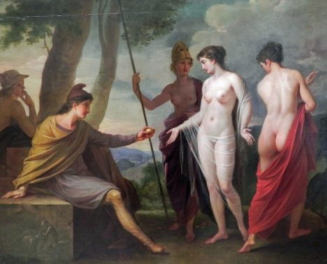 Určí, že je Afrodite krásnější než její sokyně, bohyně Athéna a Héra. Musí mu za to ovšem slíbit nejkrásnější ženu na světě.