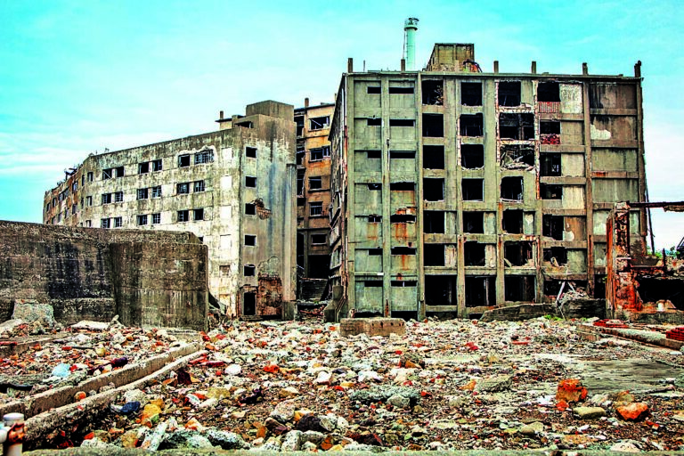 Kdysi to bývalo nejhustěji osídlené místo na světě. Nyní ale mezi polorozpadlými budovami prohání vítr cáry starých novin. Oficiálně se tento ostrov jmenuje Hašima. Jeho přezdívka Gunkanjima znamená v překladu „Ostrov bitevních lodí“.