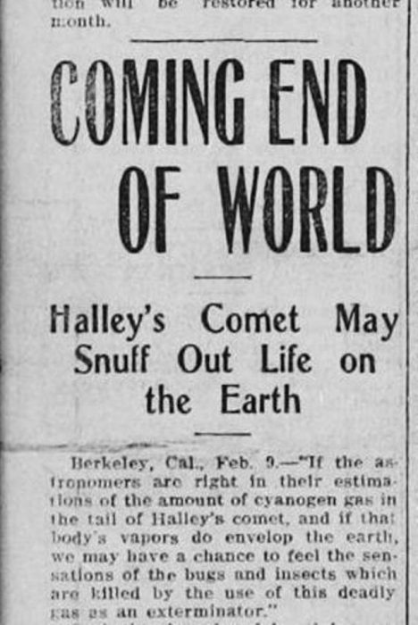 Roku 1910 se má na nočním nebi opět ukázat pověstná Halleyova kometa, která byla pouhým okem viditelná naposledy v roce 1835. Mnozí v jejím průletu vidí znamení konce světa.