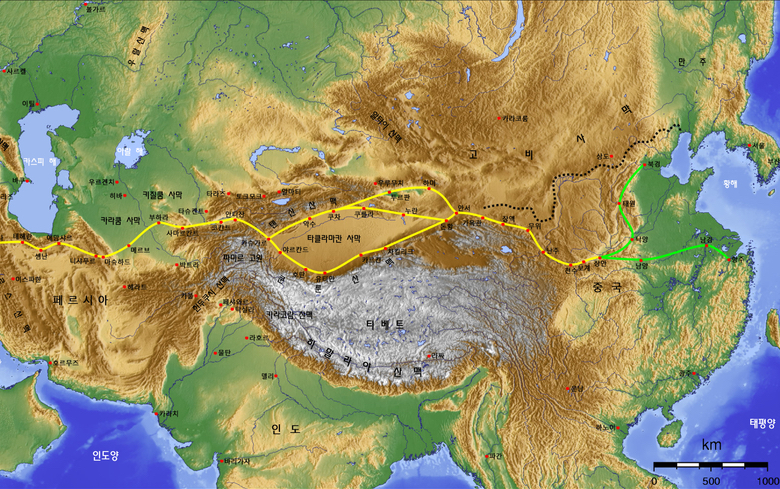 Vede z východní Asie přes střední Asii do Středomoří a přestože se o ní mluví v jednotném čísle, dělí se na několik větví, ta hlavní lemuje poušť Taklamakan v čínské provincii Sin-ťiang.