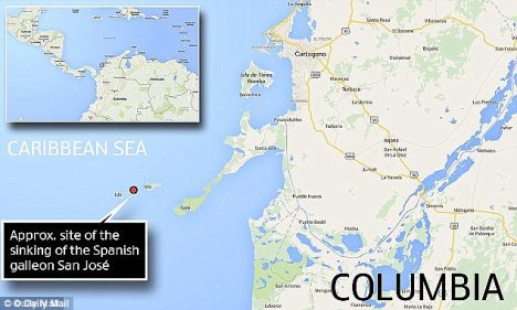 Díky poměrně přesným dobovým záznamům se podařilo polohu vraku odhalit v hloubce asi 300 metrů u kolumbijského pobřeží.