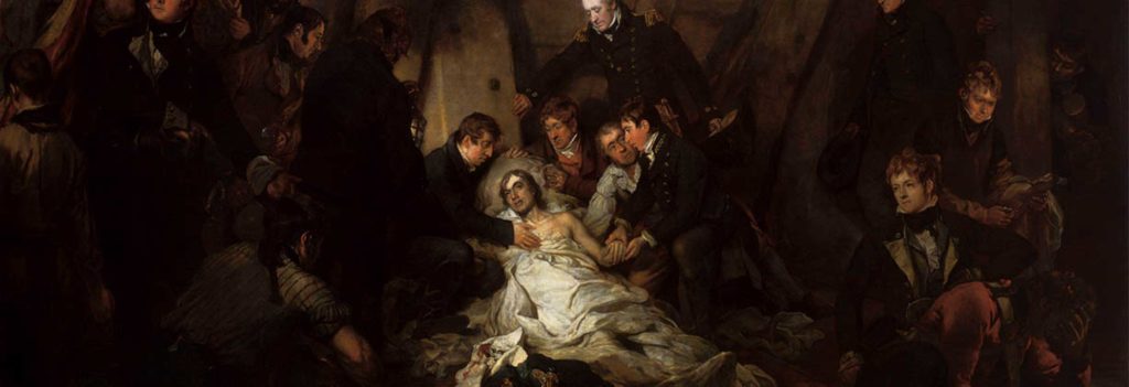 Když byl společně s kapitánem Thomasem Hardym (1769–1839) na velitelské palubě, zasáhl ho náhodný výstřel z menší francouzské lodi Redoutable.