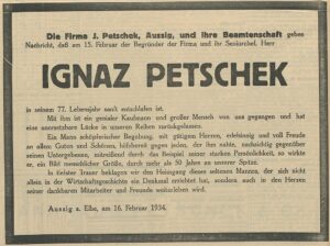 Když Ignaz Petschek roku 1934 umírá, podnikání po něm přebírá jeho syn Franz. Bohužel dny Petschků v Československu jsou brzy sečteny.