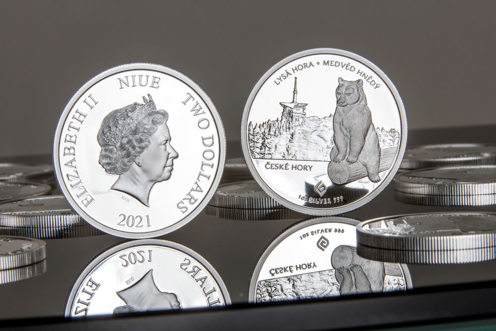 Na krásy české horské přírody a ohrožené šelmy v ní žijící se snaží upozornit série stříbrných mincí České hory. V pořadí třetí mince z edice České hory od společnosti Golden Gate zobrazuje Lysou Horu a chráněného medvěda hnědého.