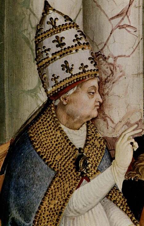 Rozepře mezi českým králem a katolíky vrcholí v roce 1466, kdy je Jiří prohlášen papežem Piem II. (1405–1464) za kacíře.