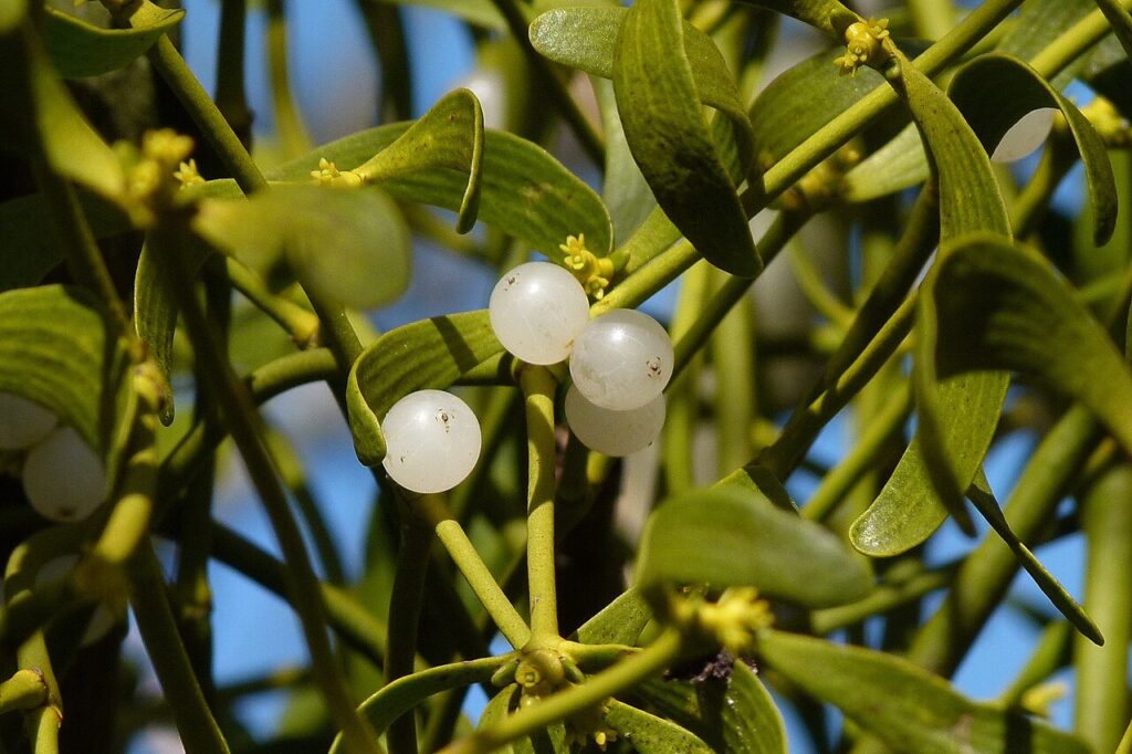Cizopasné a stále zelené jmelí je vedle vánočního stromku snad nejznámější rostlinou vánoc. Na trzích lze koupit zelené, stříbrné, zlacené. Dává se do váziček, věší se na strop. „Přináší do domu štěstí,“ vysvětluje trhovec nevědomým turistům.