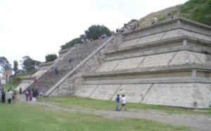 Pyramida v Cholule je největší chrámovou pyramidou na světě z hlediska objemu, předčí i pyramidy v egyptské Gíze. Budovat ji začali Olmékové asi ve 3. století př. n. l., stavba pokračovala ve čtyřech fázích až do 9. století našeho letopočtu.