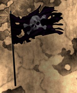 Vlajka s lebkou a zkříženými hnáty se na pirátských lodích začala vyvěšovat na začátku 18. století. Dostala i svoje jméno: Jolly Roger (Smějící se Roger).