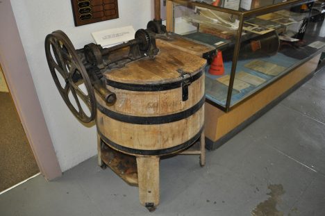 Později se k těmto pračkám přidal válec a vznikla tak pračka spojená i s mechanickou ždímačkou.
