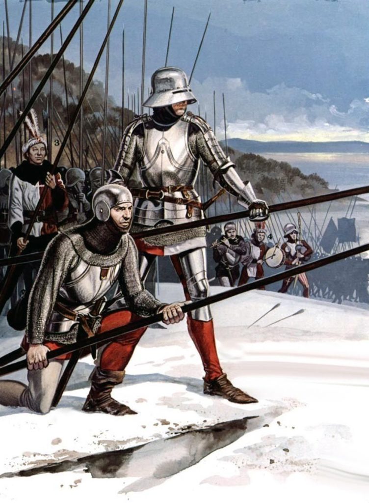 Rytíři již byli pomalu za zenitem a významné evropské mocnosti stále častěji sahaly právě po švýcarských bojovnících.