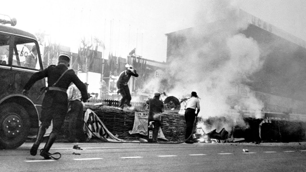 Těžký motor dopadne mezi diváky jako obří granát. Ulomená kapota zase zafunguje jako gilotina. Ti šťastnější ze sebe sundavají zbytky těl těch méně šťastných. Jakýsi muž tu stojí s nechápavým pohledem a malým synkem na ramenou.