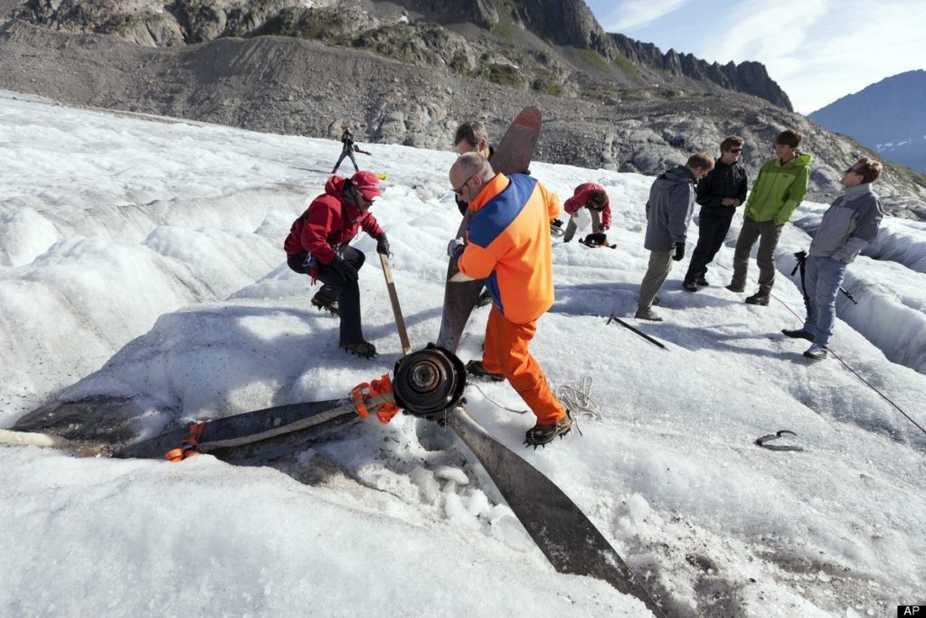 Matterhorn je posetý věcmi napůl čouhajícími ze sněhu. „S tím, co tady najdete, byste si mohli otevřít obchod,“ říká alpský pilot-záchranář Gerold Biner. To, co kdysi ledovcová masa zhltla, teď v úžehu plive zpátky.