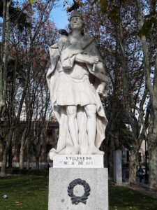 Na jeho dosud prázdný štít pak rukou omočenou v krvi namaluje čtyři pruhy. Právě v tomto příběhu se prý nachází základ pro španělskou vlajku používanou už od roku 1793.