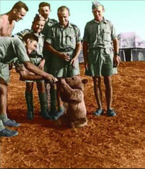 Dřív, než se však stačil rozčílit, jeden z Poláků jej vyzval, aby jej následoval. „Tady je desátník Wojtek,“ ukázal pak důstojníkovi směrem ke kleci, která stála poblíž. Britovi nejspíš spadla čelist, protože v tu chvíli koukal do tváře hnědého medvěda.