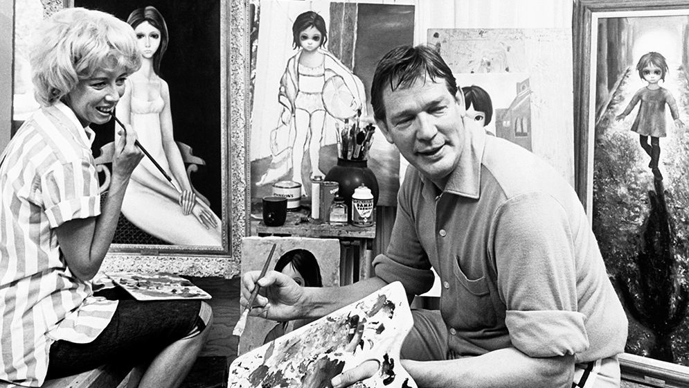V šedesátých letech se její nezaměnitelné obrazy se sentimentálním nádechem prodávají v Americe po milionech. Uznání se jí ale nedostává, protože za jejich autora se celé roky prohlašuje manžel. Nemůže však ani pípnout, nebo ji snad zabije.