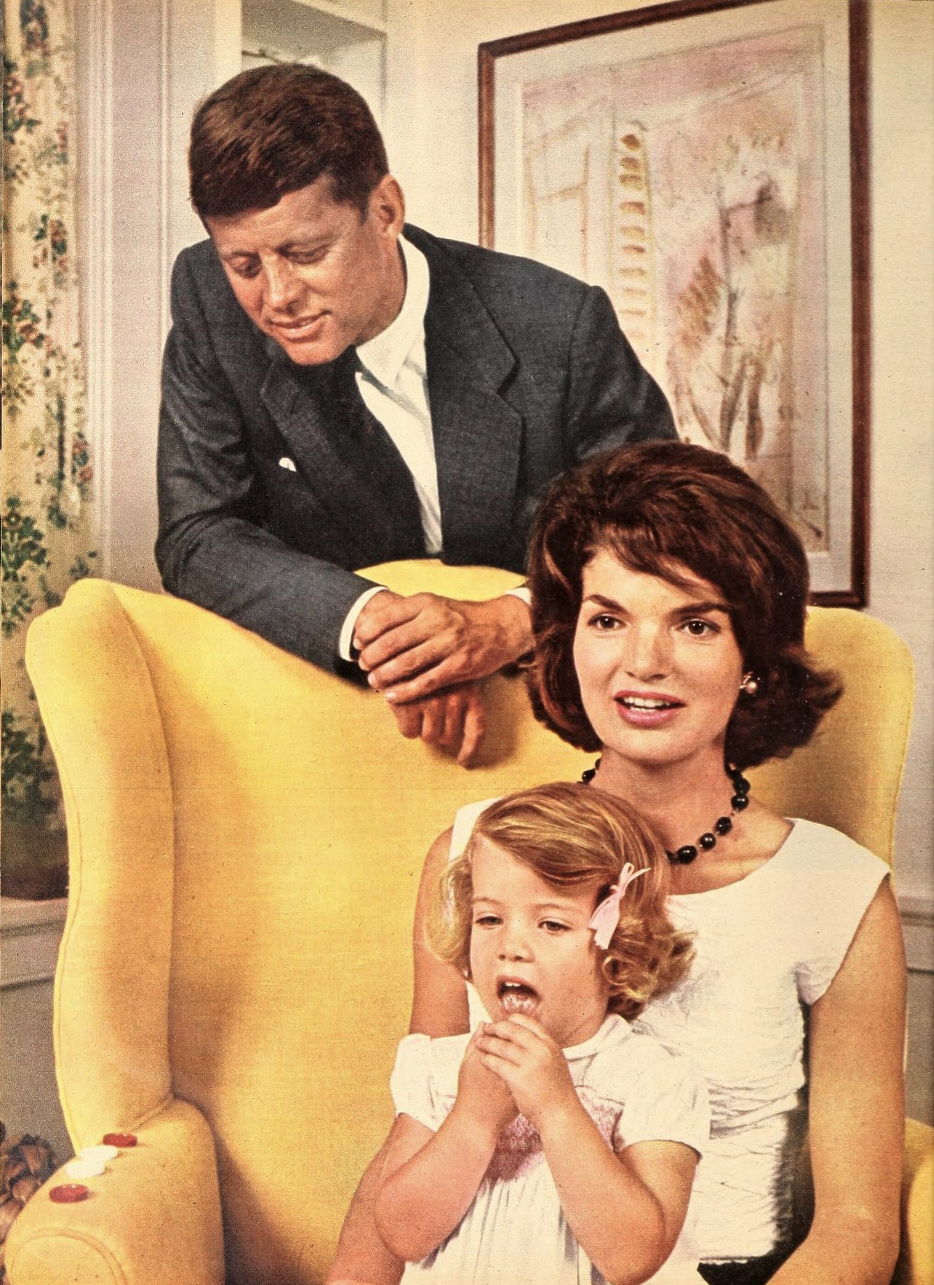 Rodina Kennedyových. Prezident s manželkou Jackie a dcerou Caroline.