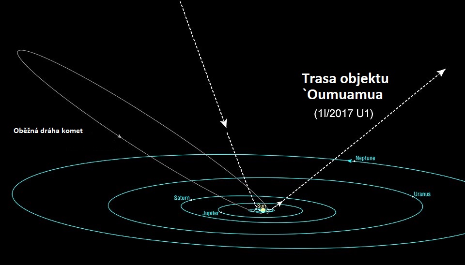 mezihvězdnou planetku. Dostal katalogové označení 1I/2017 U1 a jméno `Oumuamua, což je havajský termín pro posla z dávné minulosti.