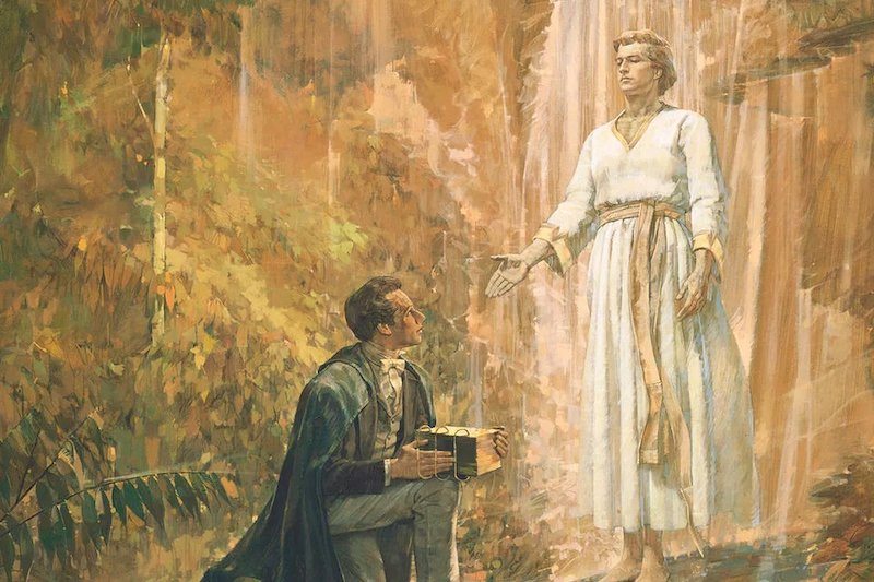 Ten mu sdělí, aby se nepřipojoval k žádné pozemské církvi a užaslý Joseph jeho radu uposlechne. O pouhé tři roky později se mu zjeví anděl, který se představí pod jménem Moroni.