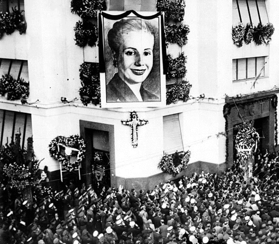 Když se o tom Perón, tou dobou žijící ve španělském exilu se svou třetí ženou, dozví, neváhá svou femme fatale exhumovat. Její tělo si s manželkou vystaví na jídelním stole a pravidelně ho přičesávají.