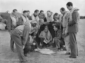 Nebe se pokryje bílými čarami – to jsou smrtící střely, které po sobě pálí stroje Spojenců a nacistů. První akce dopadne dobře, sestřel si tehdy připíše například mladý letec Emil Fechtner (1916–1940).
