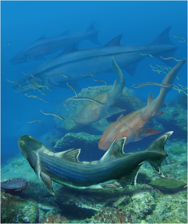 Jak vznikly zuby? Překvapivě vývojem z takzvaných plakoidních šupin ryb. Ty vznikají jako kostnaté destičky s trčícími trny a natočeny jsou k ocasu. Vidět je dodnes můžeme u paryb.