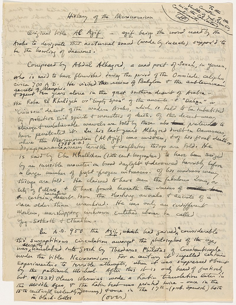 Své sny přepisuje do povídek. Ze snu vzejde i Necronomicon, kniha básníka Abdula Alhazreda, která má být jakousi biblí a grimoárem v jednom.