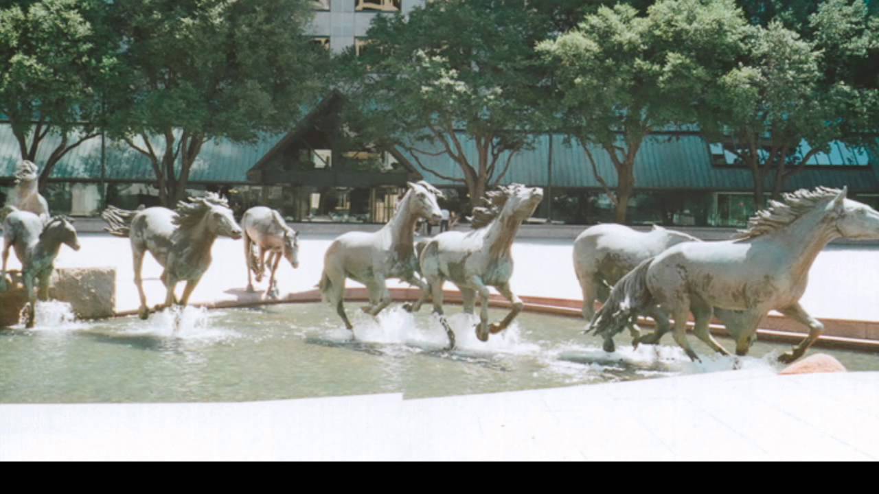 Bronzová socha amerického sochaře Roberta Glena zdobí náměstí Williams Square v Las Colinas v Irvingu v americkém státě Texas. Zobrazuje skupinu mustangů, historicky důležitých zvířat regionu, probíhající vodním tokem s vodotrysky.