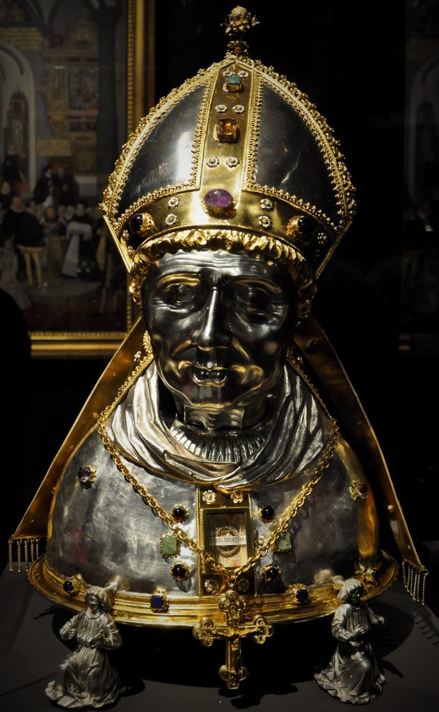 K nejvzácnějším vystaveným pokladům patří půlmetrový zlatý relikviářový kříž, který se používal při korunovacích.