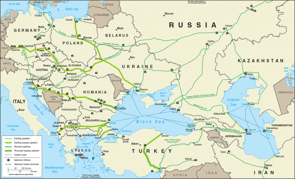 Detailní mapa ropovodů napříč současnou východní Evropou