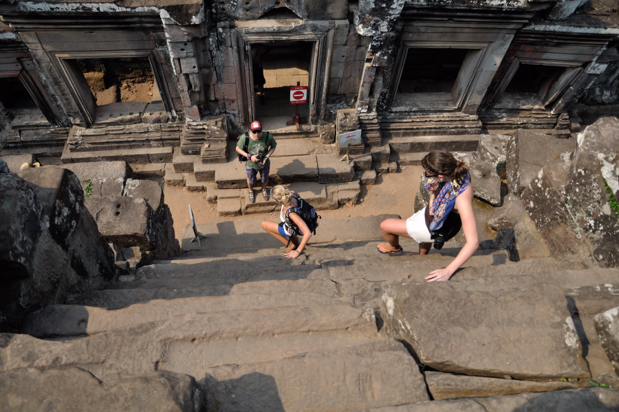 Schodiště, které musí turisté zdolat, aby se dostali do nejvyšší úrovně tohoto chrámu, vede od jedné terasy ke druhé a není nic pro slabé povahy. Je totiž tak strmé, že si návštěvníci památky při cestě nahoru musí pomáhat rukama.