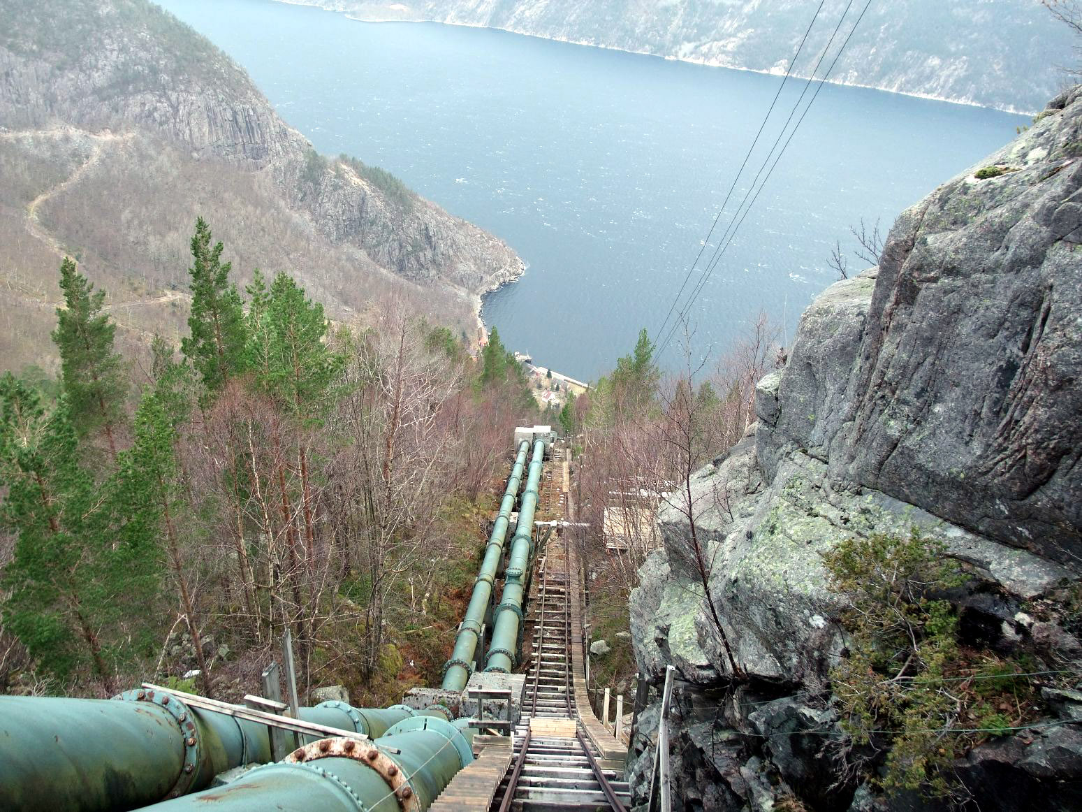 Po zhruba 700 schodech si turista může výstup ještě rozmyslet. Pokud mu dochází dech nebo odvaha, jednoduše odbočí přímo ze schodiště na lesní stezku a po lehké hodinové túře se ocitne dole v přístavu. Kdo dojde až nahoru, je odměněn úchvatnou vyhlídkou na okolní fjordy.