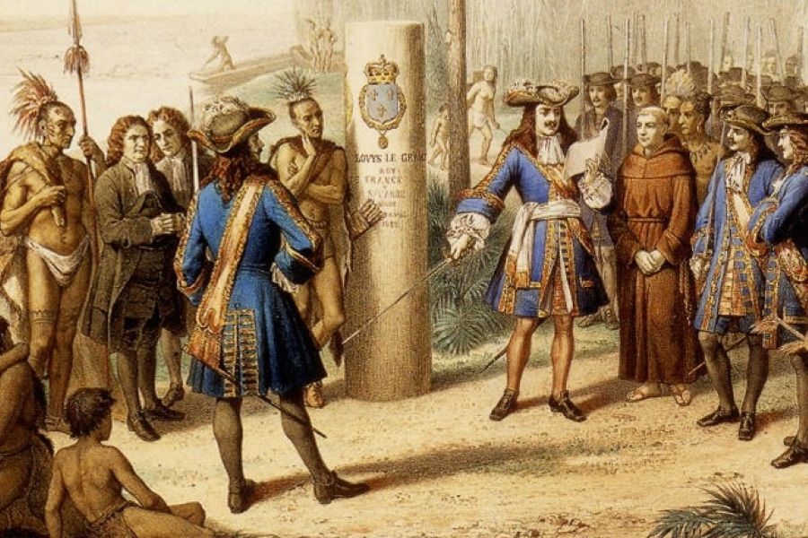Roku 1682 si René-Robert Cavelier de La Salle (1643–1687) splní svůj velký vytoužený cíl: Společně s malou výpravou sjede řeku Mississippi od Illinois až k jejímu ústí do Mexického zálivu. Úspěch ho ponoukne k další akci.