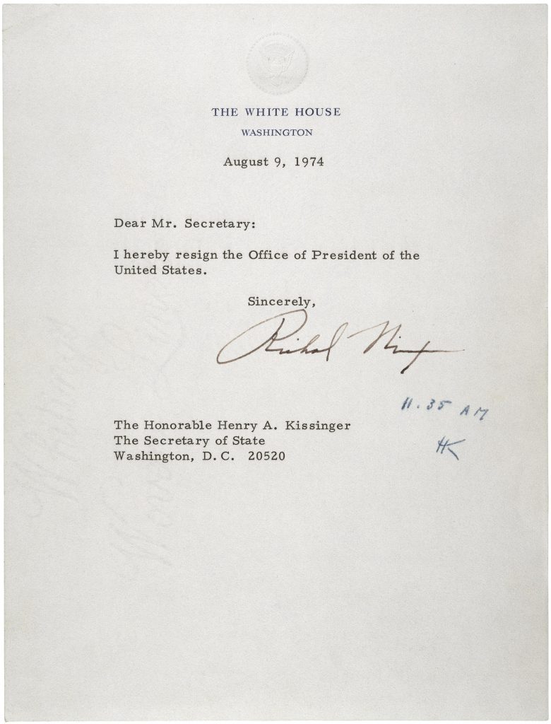 Usvědčující je nahrávka z 23. června 1972, kdy Nixon spolupracovníkovi nařizuje, ať informuje ředitele CIA a FBI, kteří mají přestat kauzu vyšetřovat. 8. srpna 1974 proto Nixon na funkci rezignuje.