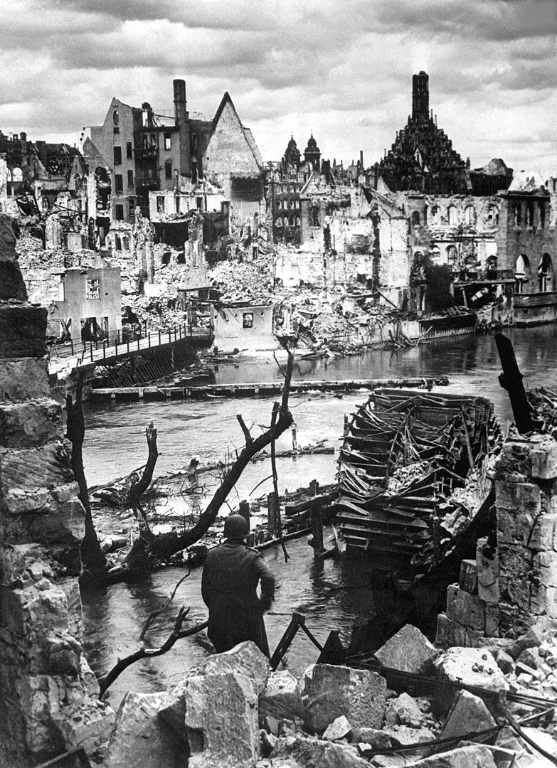 Norimberk je plný sutin a špíny. Z původních 450 000 obyvatel jich přežilo 160 000, z 90 procent domů jsou trosky, často jen obvodové zdivo.
