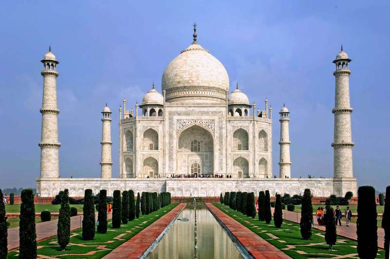 Monumentální pomník v Ágře je symbolem Indie. Nechal ho postavit císař Šáhdžahán (1592-1666) na památku své ženy Mumtáz Mahal (1593–1631). Pozoruhodný je i tím, že během dne mění barvu. Ráno bývá narůžovělá, večer mléčně bílá a ve slunečních paprscích zlatá.