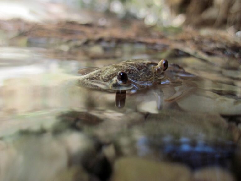 Nechce se ani věřit, že ve zdejší vyprahlé krajině, kde obvykle v letních měsících doporučují denně vypít několik litrů vody, na vás z malých bahnitých jezírek bojovně zacvakají krabí klepeta. Populace říčního kraba (Potamon potamios) je zde navíc relativně početná.