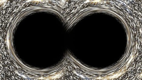 Dva extrémní objekty se kolem točí jako nesmělí tanečníci ve hvězdném čardáši smrti, než splynou dohromady a během několika milisekund uvolní energii 50krát větší energii než zbytek viditelného kosmu.