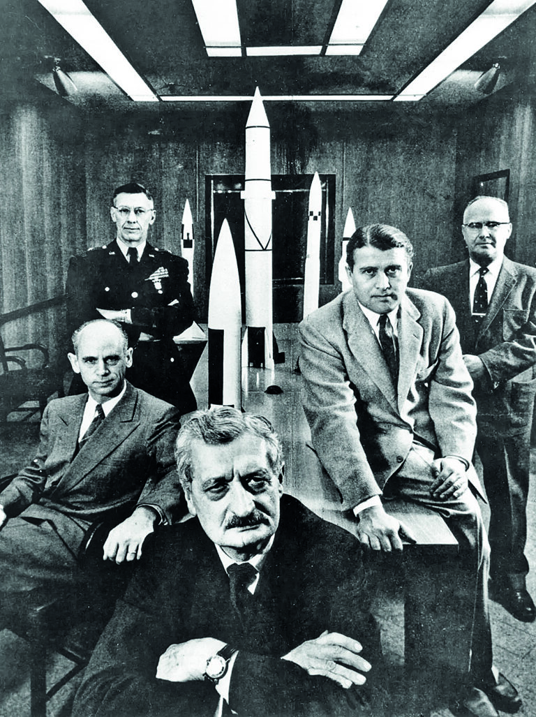 Za raketou Saturn stojí tým techniků, vedených zkušeným německým raketovým konstruktérem Wernherem von Braunem (1912–1977). Ale i dalšími bývalými nacisty!