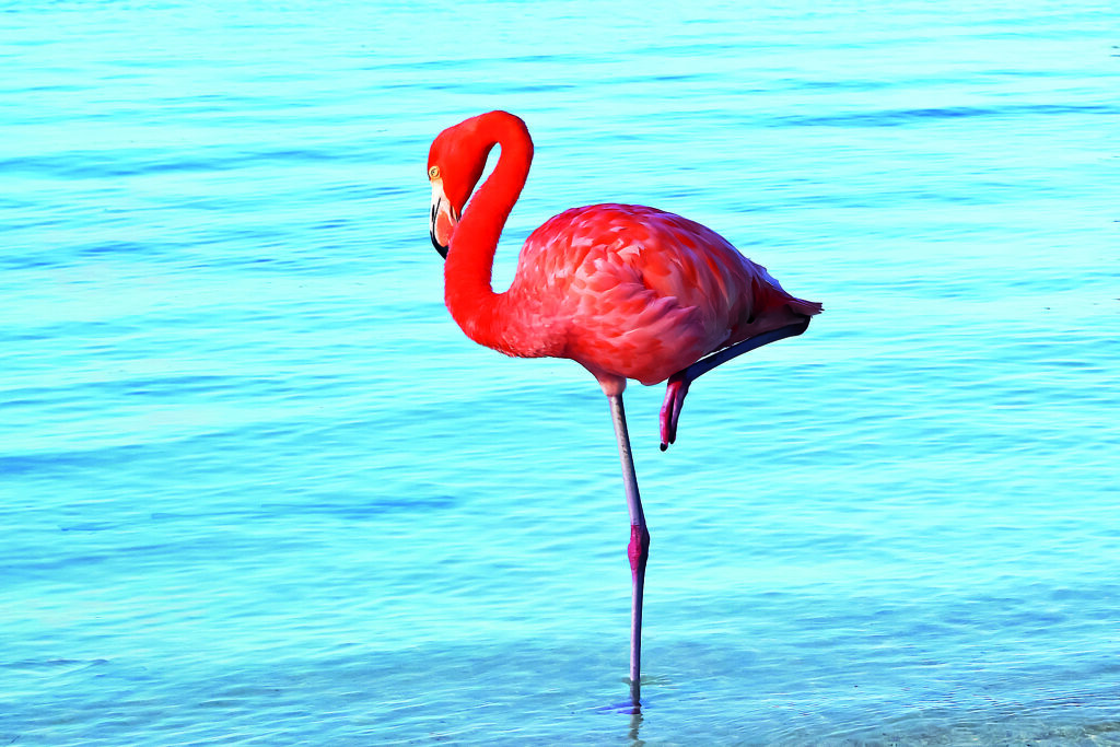 Je to sice s podivem, ale takhle stát je pro plameňáky nejpohodlnější a dobře se jim tak odpočívá.