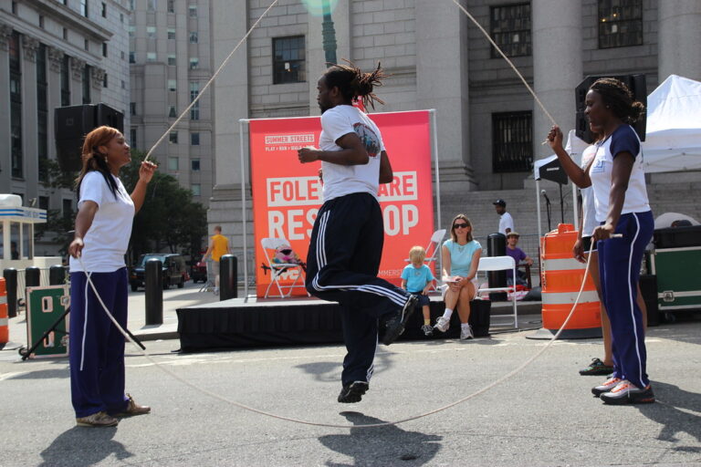Když se v 19. století hodně rodin v Americe stěhuje do měst, dívky tu objeví chodníky a hladké plochy, vymýšlejí si různé taktiky a nová pravidla a brzy tu už skáčou za mohutného skandování publika. Z obyčejné hry se stává sport…