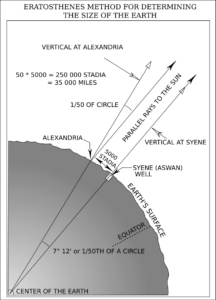 Přibližně o století později další řecký matematik Eratosthenés z Kyrény (276/272–194 př. n. l.) poprvé vypočítal velikost Zeměkoule.