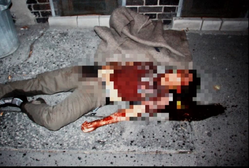 Mladší z mužů evidentně ovládá bojové umění a poměrně dobře kontroluje situaci, jenže Postl má těžší kalibr – zbraň! Ozve se výstřel a vyhazovač skončí na zemi. Do bezvládného těla pak Postl pošle ještě dalších šest výstřelů!