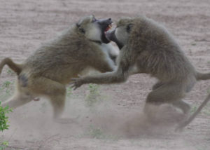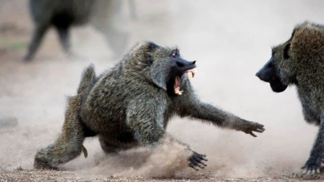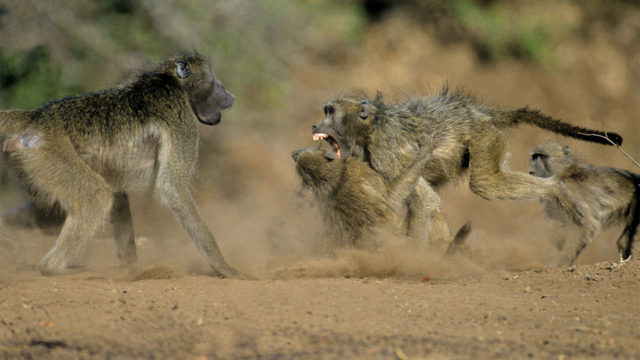 V případě rvačky mezi dvěma zvířaty jí ostatní paviáni věnují větší pozornost jen tehdy, když se jedná o střet paviánů z různých rodin, nebo když konflikt vyvolal níže postavený jedinec.