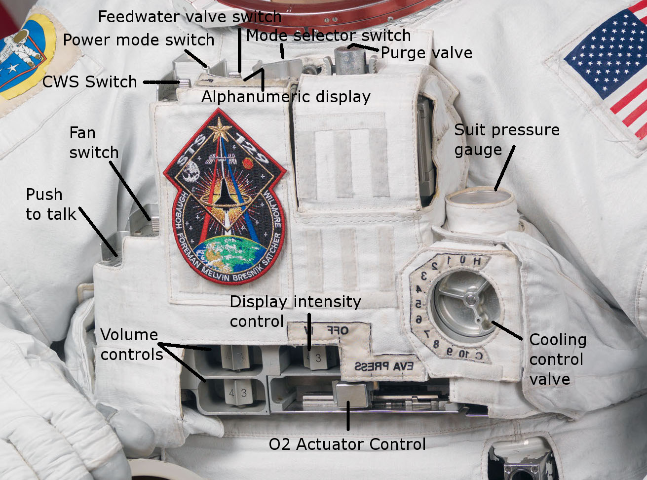 Srdcem celého skafandru je ale ústřední ovládací panel DCM (Display and Control Module), tedy krabička plná displejů a spínačů umístěná na břiše, která kontroluje všechny funkce. A jak na ni vlastně uvidíme? Pomocí zrcátek umístěných na rukávech.
