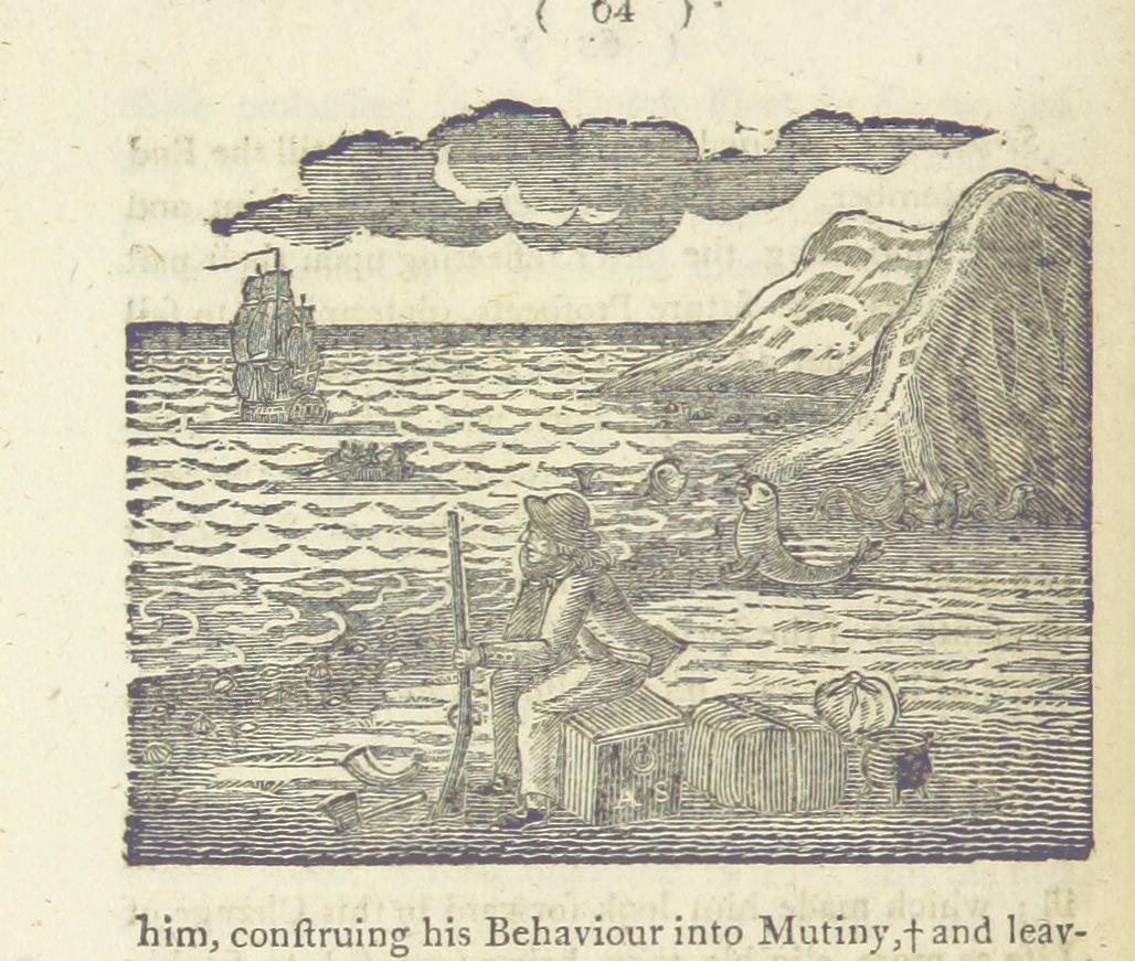 Po jedné z bitev je ovšem loď vážně poškozena, a zakotví proto na ostrově Más a Tierra v jižním tichomoří, asi 650 kilometrů od pobřeží Chile. Selkirk požaduje nutné opravy, než se vydají opět na cestu. „To radši zůstanu tady na ostrově, než se potopit na té rozstřílené kocábce!“ vykřikne v zápalu hněvu a kapitán lodi mu rád vyhoví.