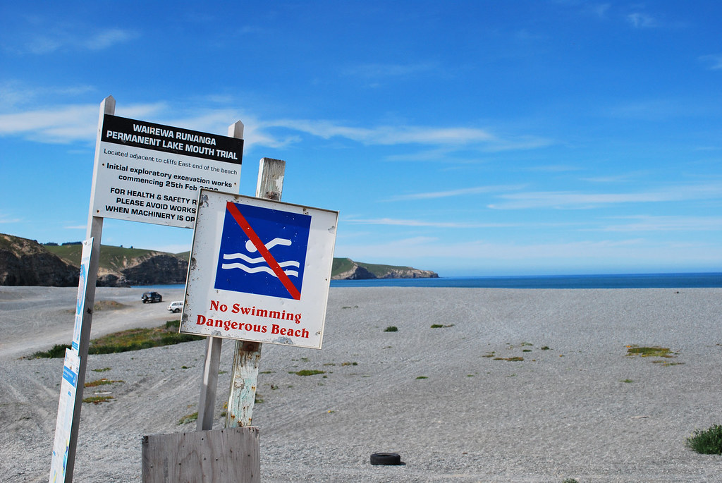 Na pláži najdete ceduli varující před nebezpečím, na které se za každou oběť připíše čárka. Počet čárek tu už v překročil 80, minimálně 15 utonulých se prý nikdy nepodařilo najít.