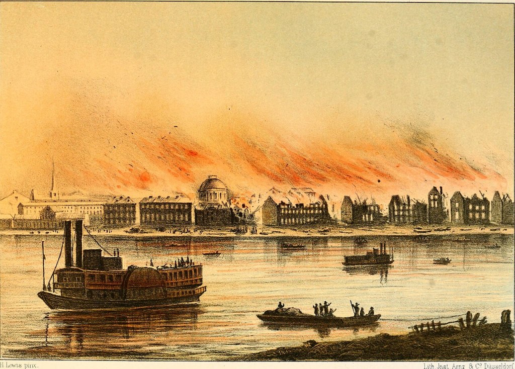 Jeden z největších požárů v historii Spojených států amerických postihl v roce 1849 město St. Louis. V polovině devatenáctého století bylo St. Louis živým centrem, které těžilo zejména ze své výhodné polohy poblíž soutoků řek Mississippi a Missouri.